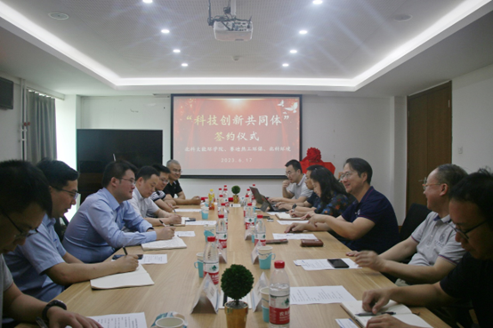 會上,三方就合作內(nèi)容和規(guī)劃進行了細致研討達成一致,簽署了合作協(xié)議,最后三方領(lǐng)導共同為“科技創(chuàng)新共同體”揭牌。