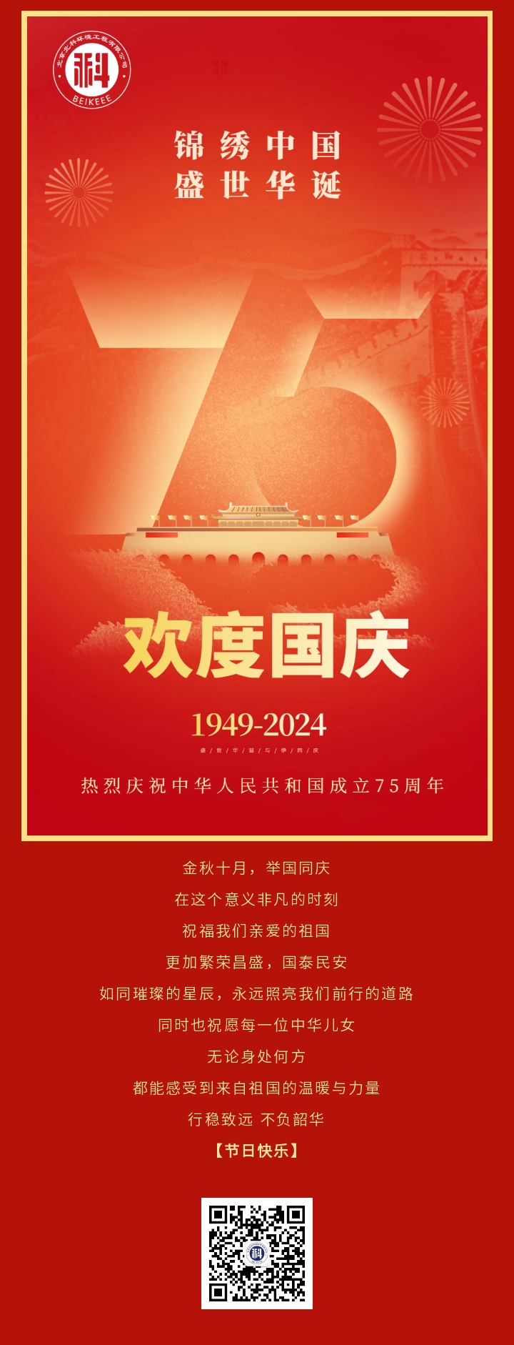 輝煌七十五載 錦繡中國!北科環(huán)境祝您國慶節(jié)快樂~