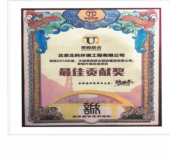 北科環(huán)境榮獲天津榮程鋼鐵集團“最佳貢獻獎”稱號